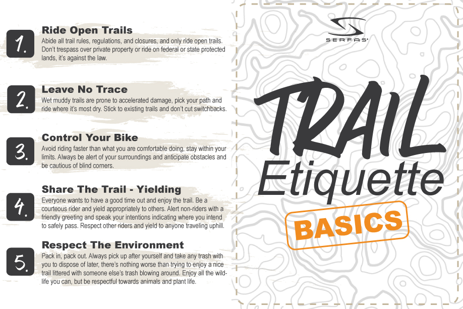 Follow these 5 basic trail etiquette guidelines to get the most out of your ride and to do your part to help make sure trails stay open and everyone can enjoy them equally.