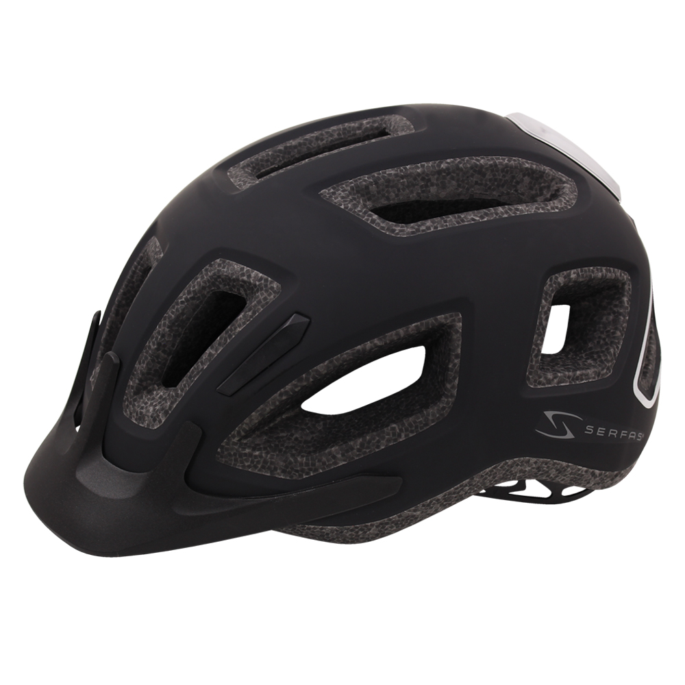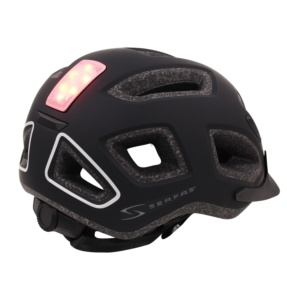 The Serfas® Metro features clean modern style with large cooling vents, forward facing sun visor, Posi-Fit adjustment dial, and integrated rear facing LED safety light paired with high-visibility reflective silver accents.