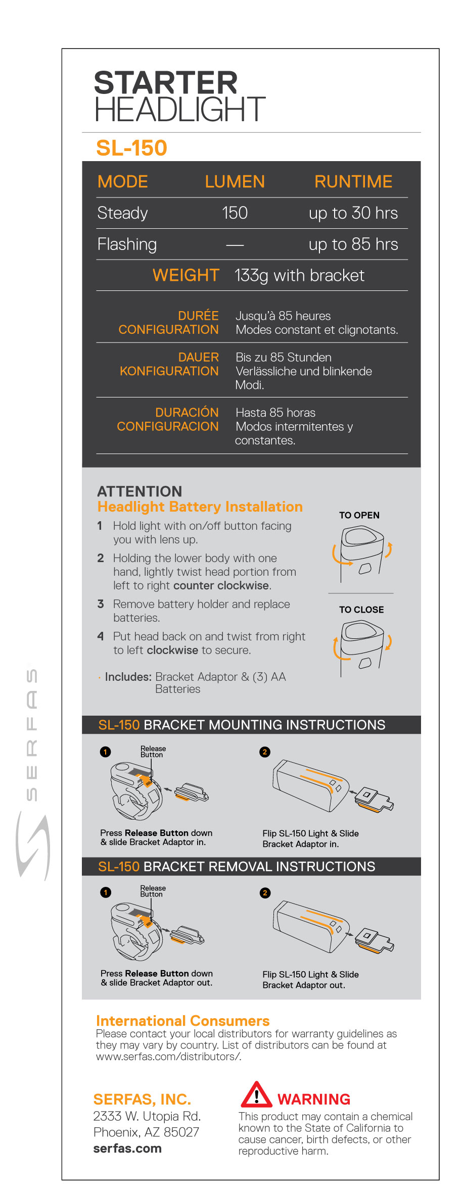 ⭐️⭐️⭐️⭐️⭐️Received this light:5/5/2018.For a Replaceable Battery headlight(it came with 3 AA batteries not the miss print of 3AAA,Serfas, NOT THAT I’m 0% complaining,this is 1 of the Brightest little headlight this 60 years young,legally handicapped/crippled X Marine has ever had,not being able to have a car!!! Having a bike or two it/they Help KEEP Me OUT of a WHEELCHAIR!!!!! Also received today replacement universal quik release headlight bracket for my USL-155 USB rechargeable headlight,that is as bright as EVER,works as good as EVER,coming up on/at approximately 2and a half years old!!! THANK❤️U Serfas!!!!!