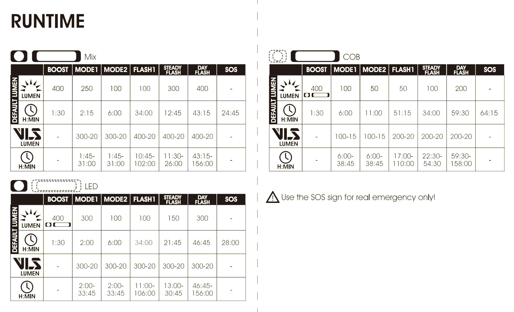 • Max.Runtime: 52 hrs (FL-1 tested)