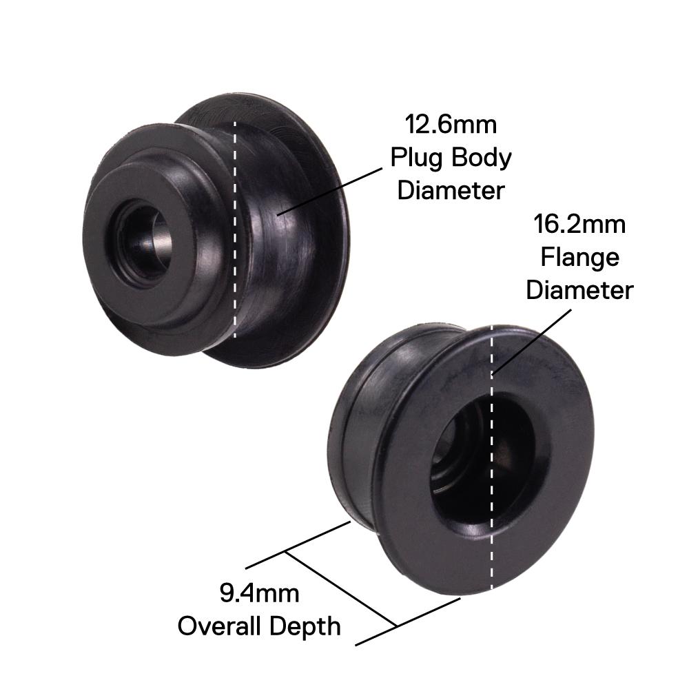 - Size: 9.4mm Overall Depth, 16.2mm Flange Diameter, 12.6mm Plug Diameter