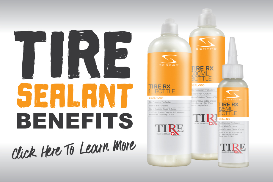 Serfas® Tire RX™ sealant can be used in either traditional tube or in tubeless tire setups as an extra layer of added flat protection. Tire RX™ is designed to coat the inside of the tire, or tube depending on setup, and in the event of a puncture or leak the sealant fills up these spaces (up to a 1/4 inch) and stops the escaping air so you can keep riding.